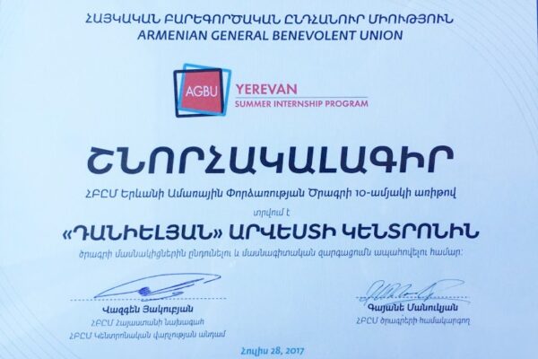Հուլիսի 14-ին երիտասարդ գեղանկարիչ Արամ Դանիելյանը իր աշխատանքներից «Կոնֆլիկտ» կտավը նվիրեց ազգային պատկերասրահին: Ի նշան փոխադարձ բարեկամության ՀԱՊ տնօրեն Արման Ծատուրյանը շնորհակալագիր հանձնեց նկարչին և իր խոսքում շեշտեց, որ արվեստի արժեքավոր և մնայուն գործերը պետք է պահպանվեն մայր թանգարանում: